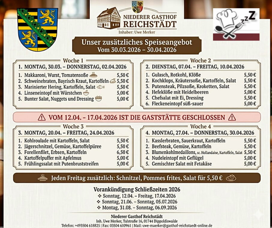 Speiseplan Niederer Gasthof Reichstädt